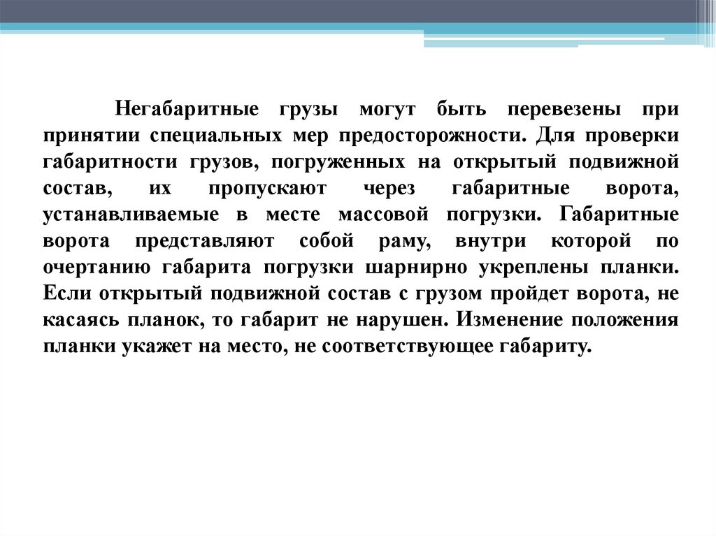 Негабаритные грузы могут быть перевезены припринятии специальных мер предосторожности. Для проверки