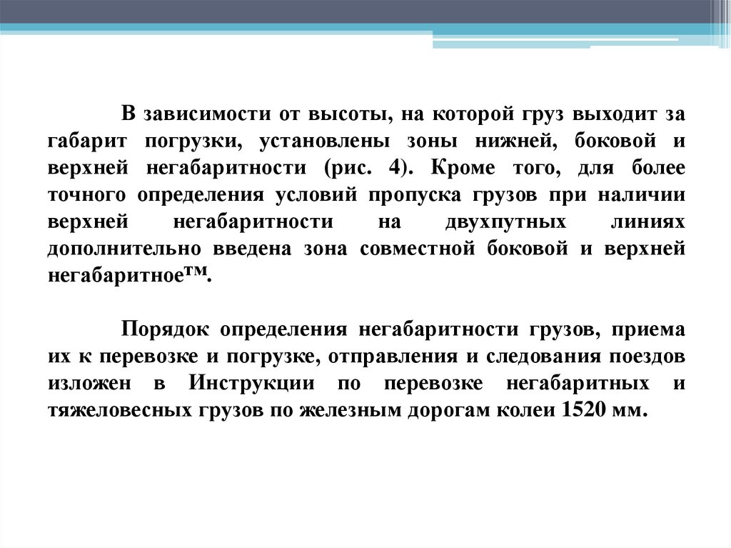 В зависимости от высоты, на которой груз выходит загабарит погрузки, установлены зоны нижней, боковой и