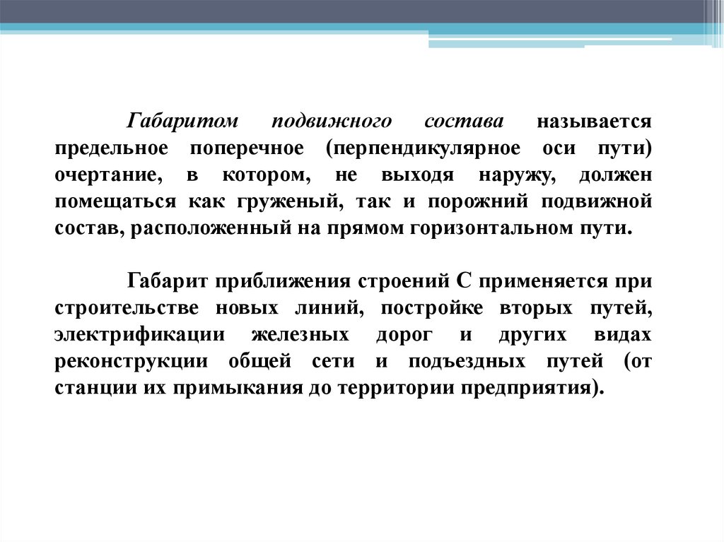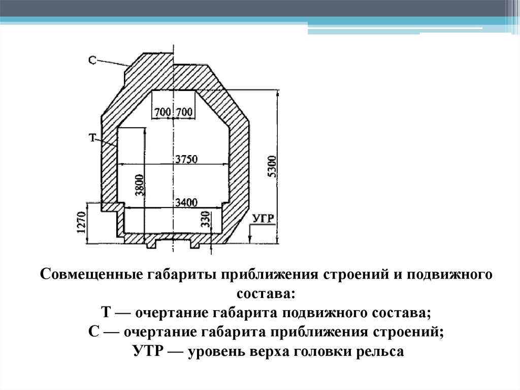 Габаритом подвижного состава называетсяпредельное поперечное (перпендикулярное оси пути)
