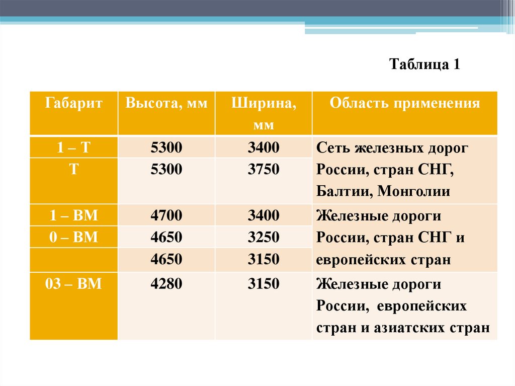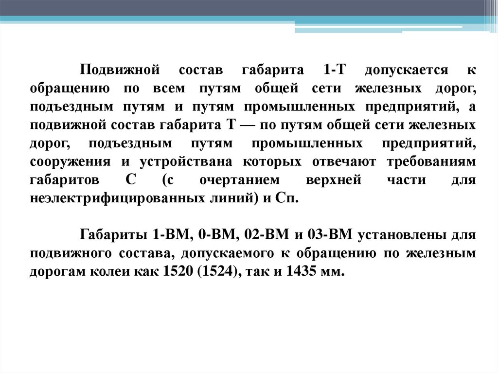 Подвижной состав габарита 1-Т допускается кобращению по всем путям общей сети железных дорог,
