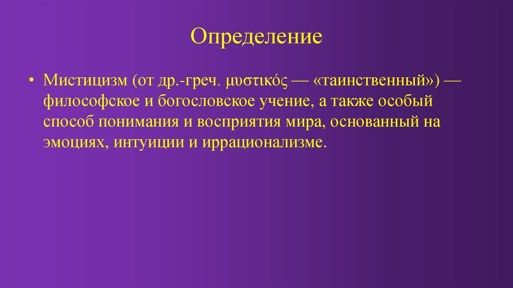 Определение• Мистицизм (от др.-греч. μυστικός — «таинственный») —