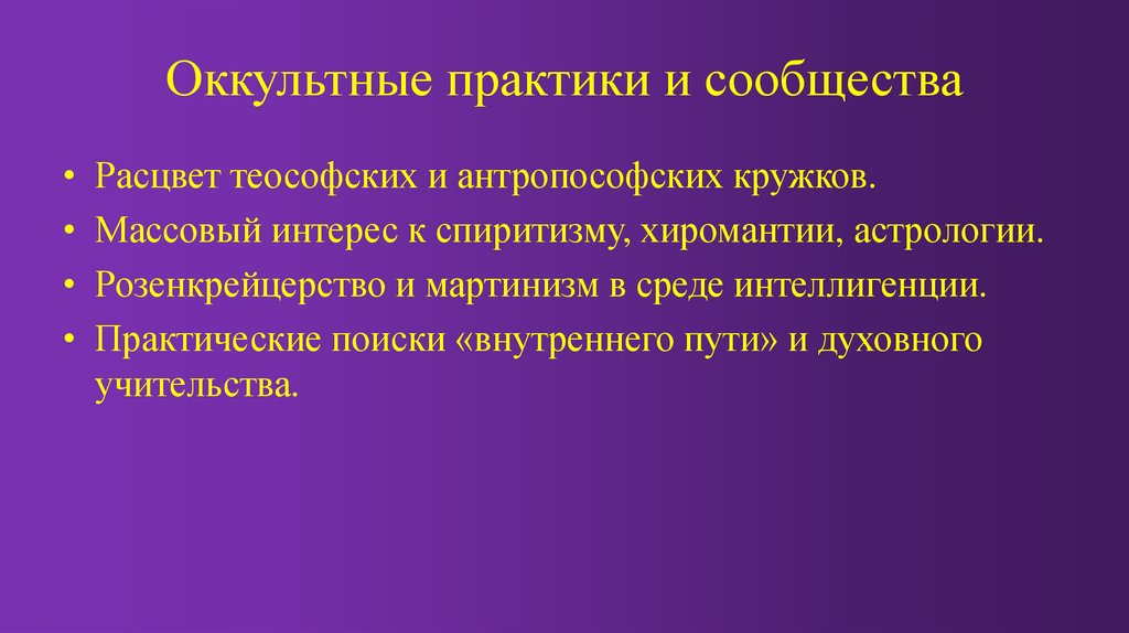 Оккультные практики и сообщества• Расцвет теософских и антропософских кружков.