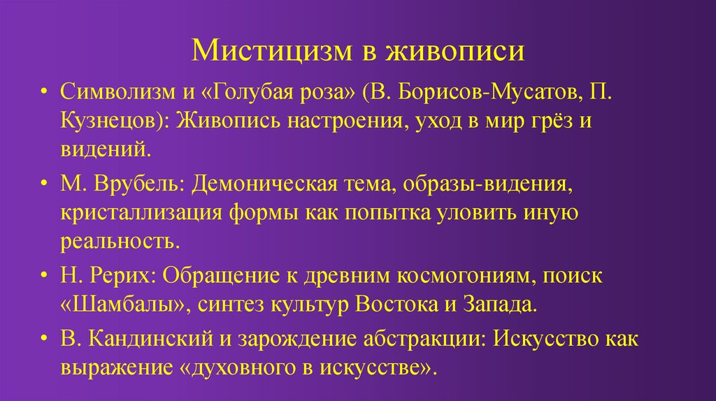 Мистицизм в живописи• Символизм и «Голубая роза» (В. Борисов-Мусатов, П.