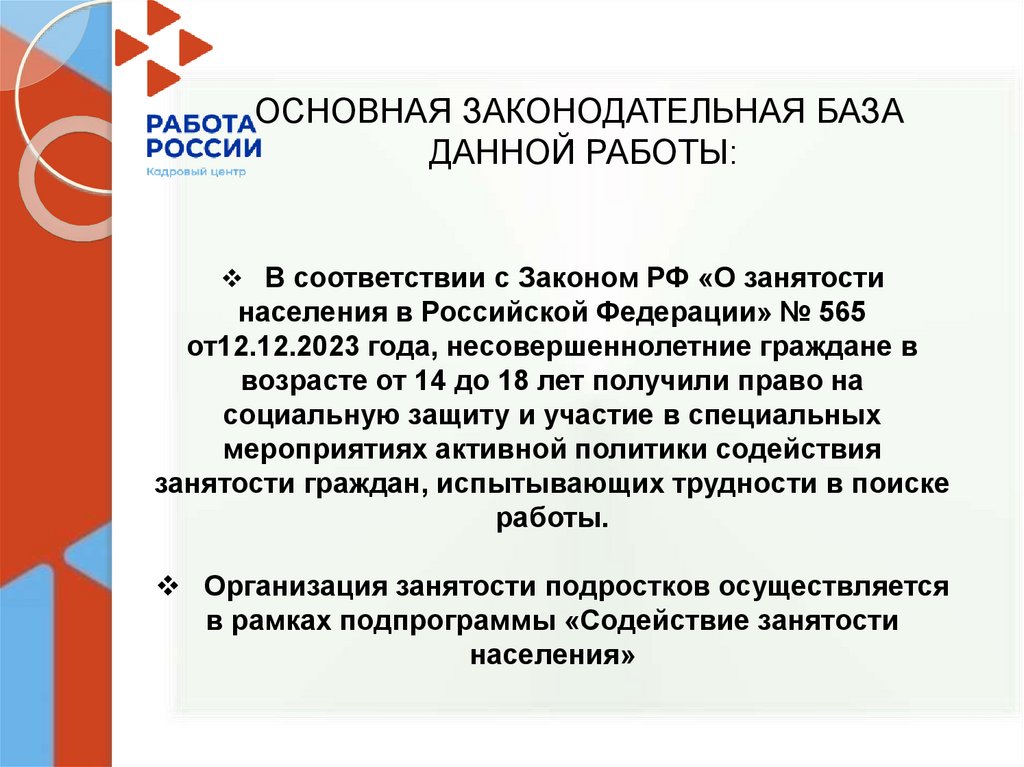 ТРУДОУСТРОЙСТВА НЕСОВЕРШЕННОЛЕТНИХ ГРАЖДАН