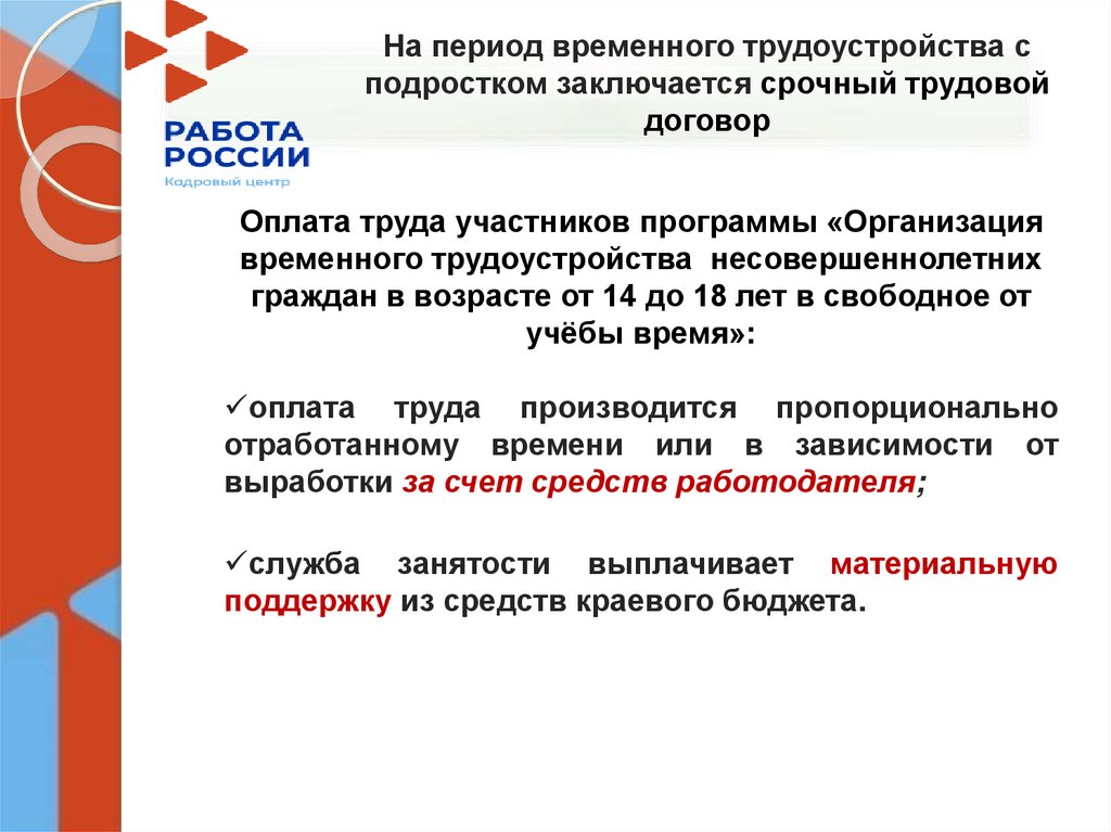 На период временного трудоустройства сподростком заключается срочный трудовой