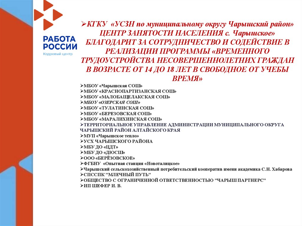КГКУ «УСЗН по муниципальному округу Чарышский район»ЦЕНТР ЗАНЯТОСТИ НАСЕЛЕНИЯ с. Чарышское»