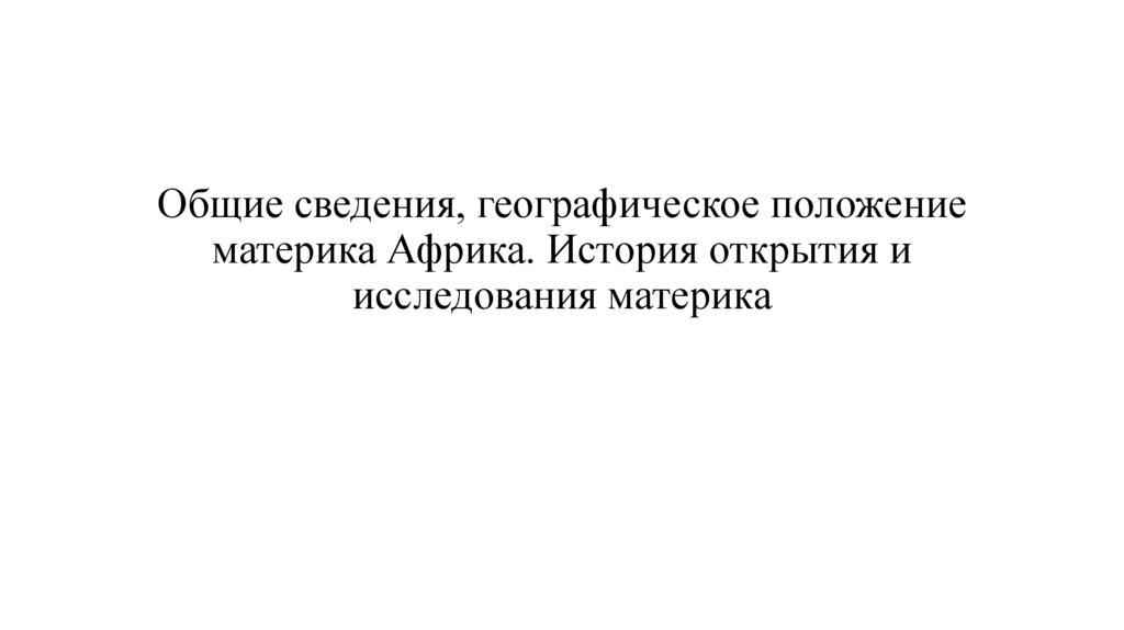 1. Общие сведения, географическое положение материка Африка. История открытия и исследования материка