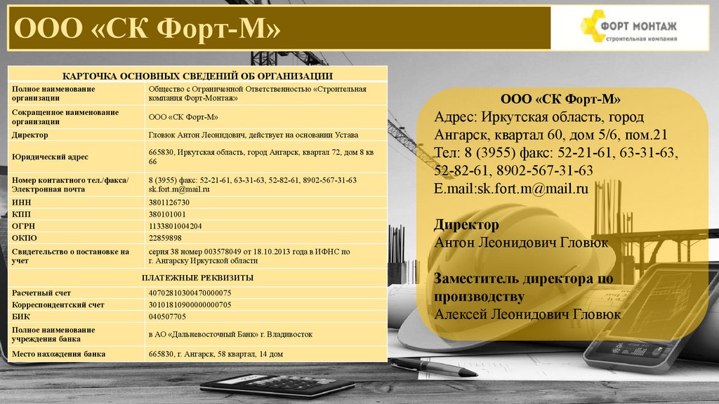 ООО «СК Форт-М»КАРТОЧКА ОСНОВНЫХ СВЕДЕНИЙ ОБ ОРГАНИЗАЦИИ