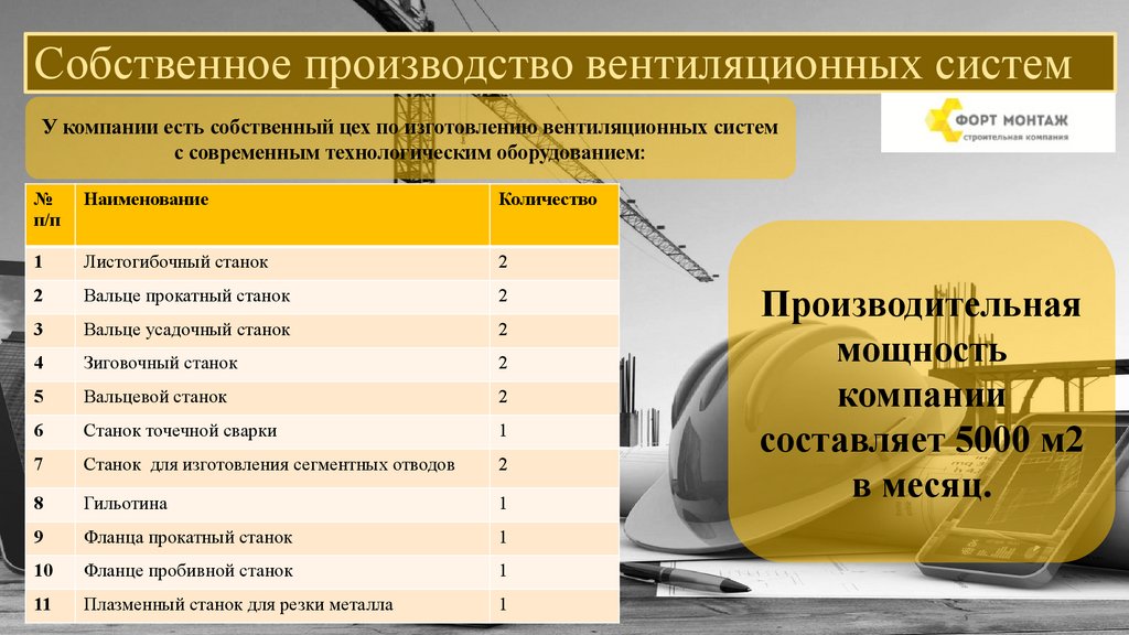 Так же компания имею собственный цех по производству вентиляционных систем.