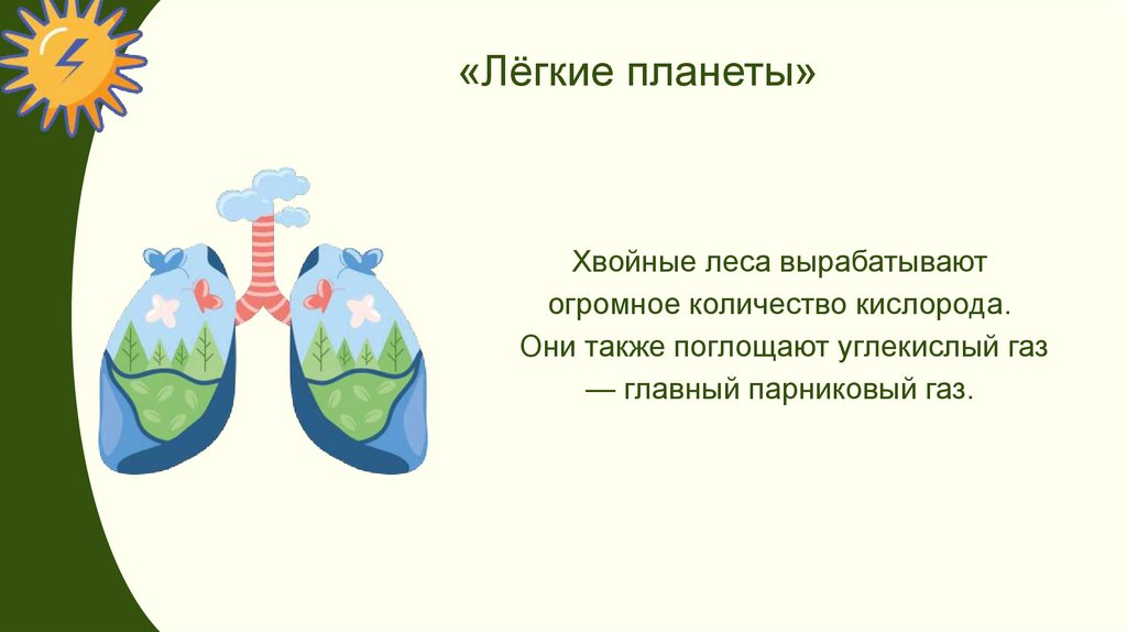 «Лёгкие планеты»Хвойные леса вырабатывают