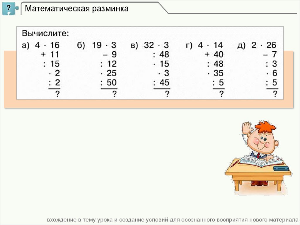 вхождение в тему урока и создание условий для осознанного восприятия нового материала