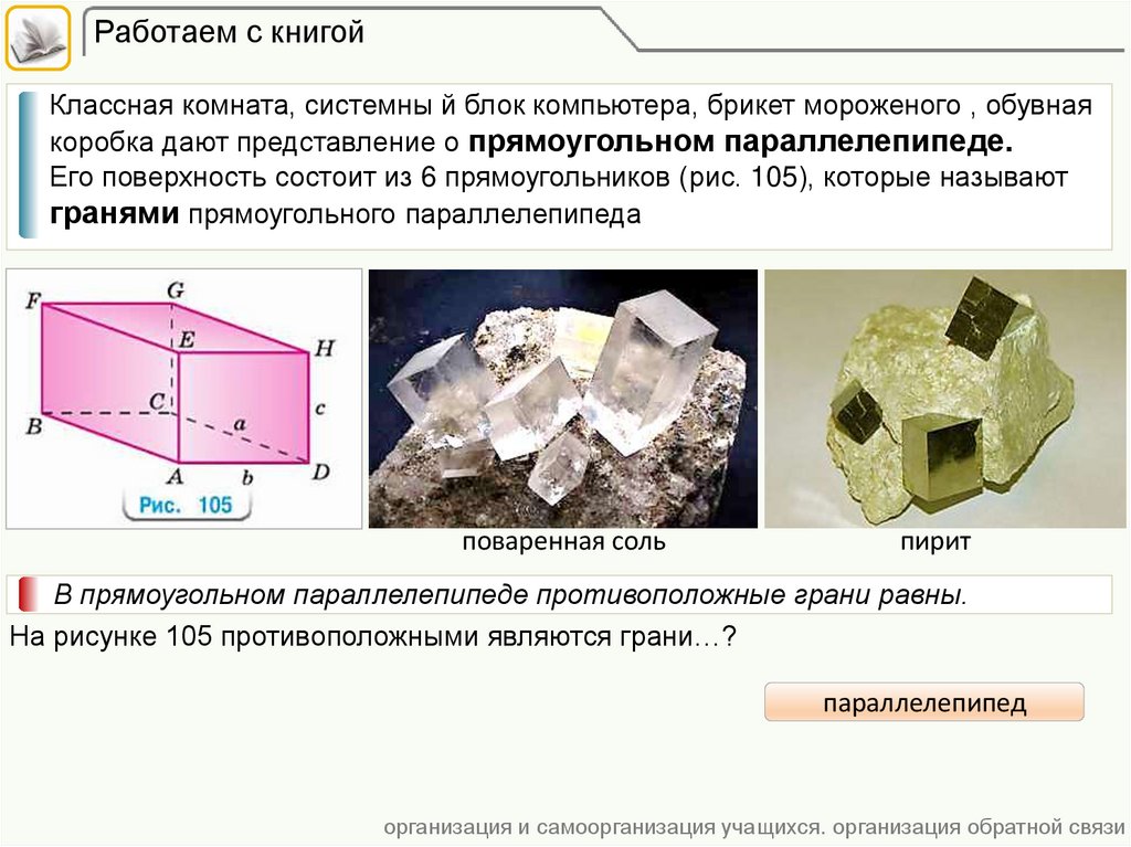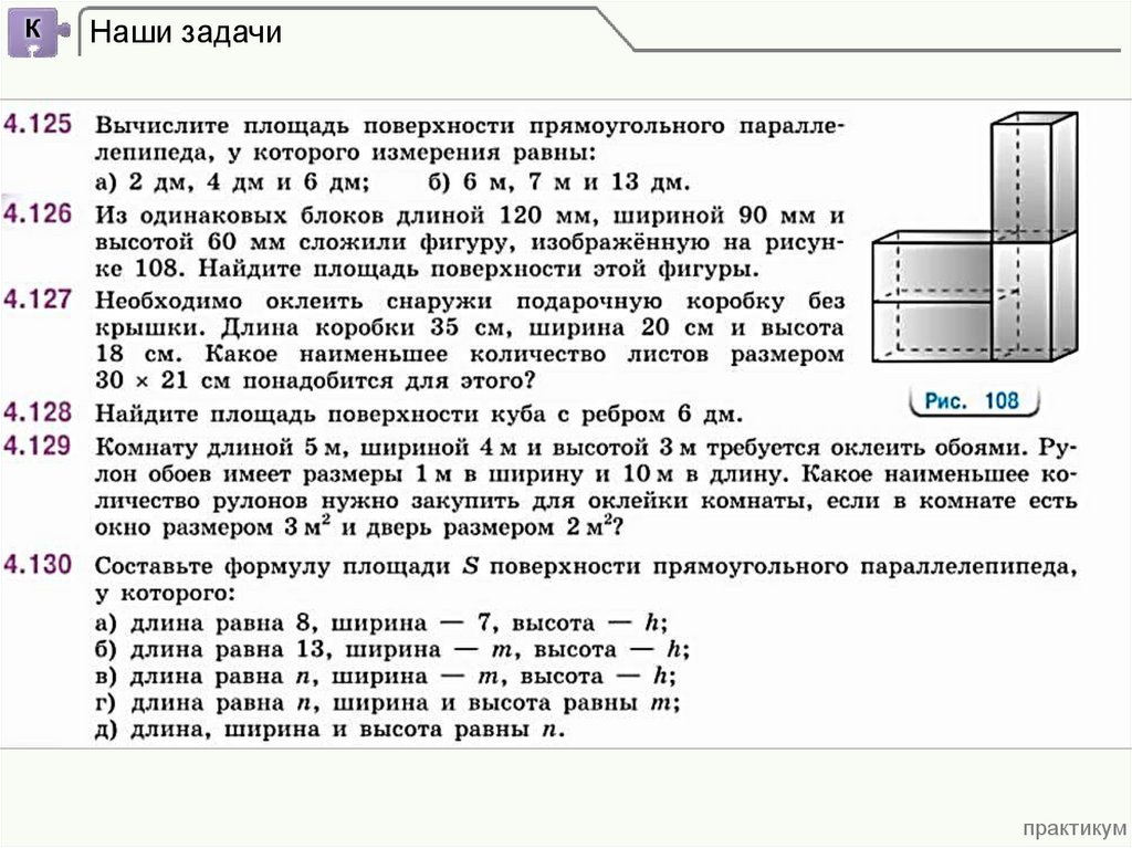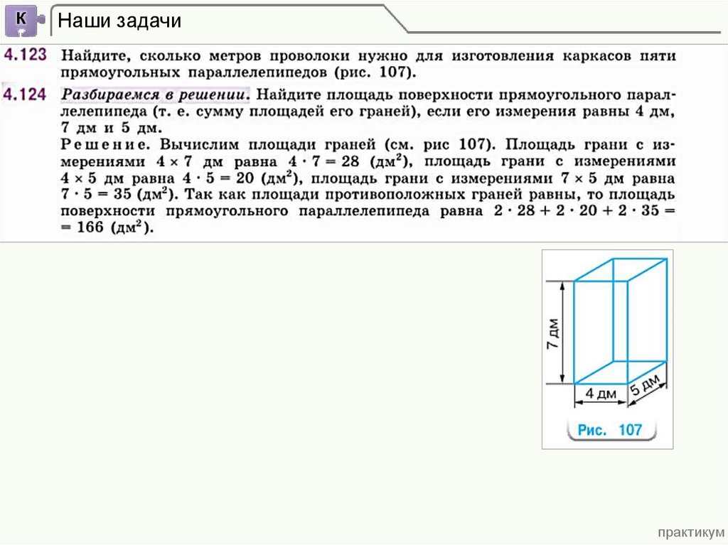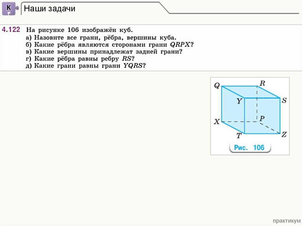 Работаем с книгойКуб — это прямоугольный параллелепипед, у которого все измерения