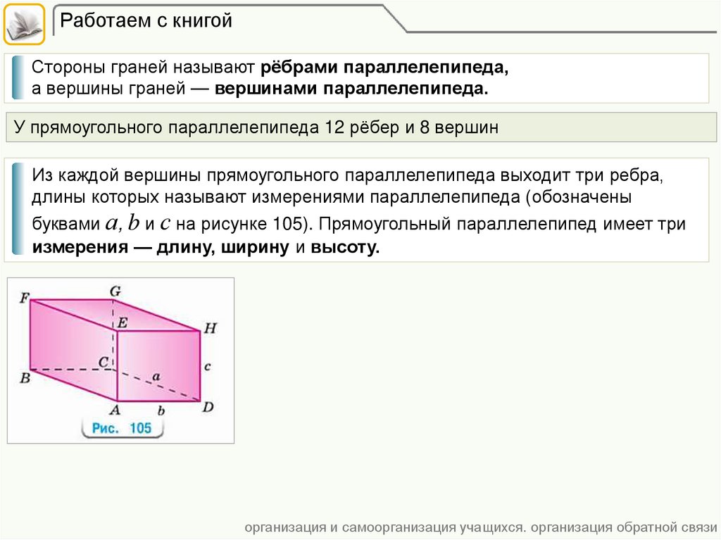 Работаем с книгойСтороны граней называют рёбрами параллелепипеда,