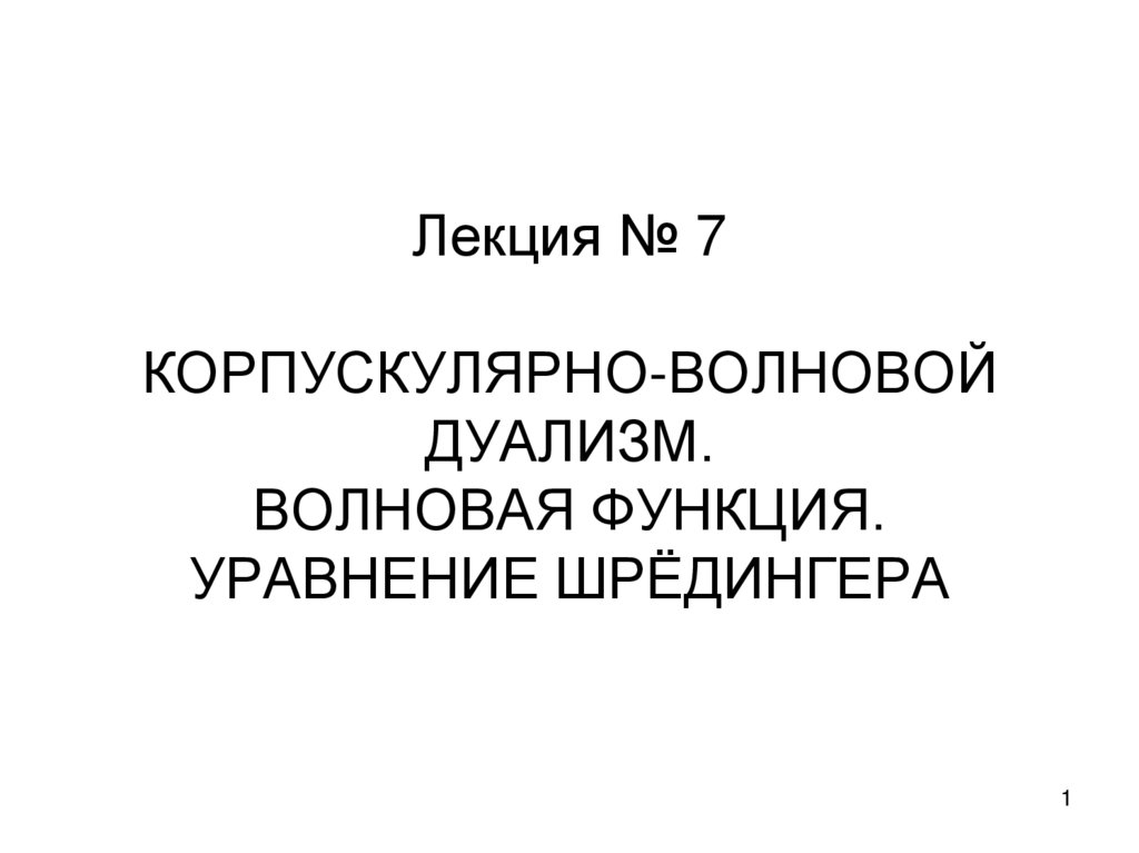 1. Лекция № 7 КОРПУСКУЛЯРНО-ВОЛНОВОЙ ДУАЛИЗМ. ВОЛНОВАЯ ФУНКЦИЯ. УРАВНЕНИЕ ШРЁДИНГЕРА