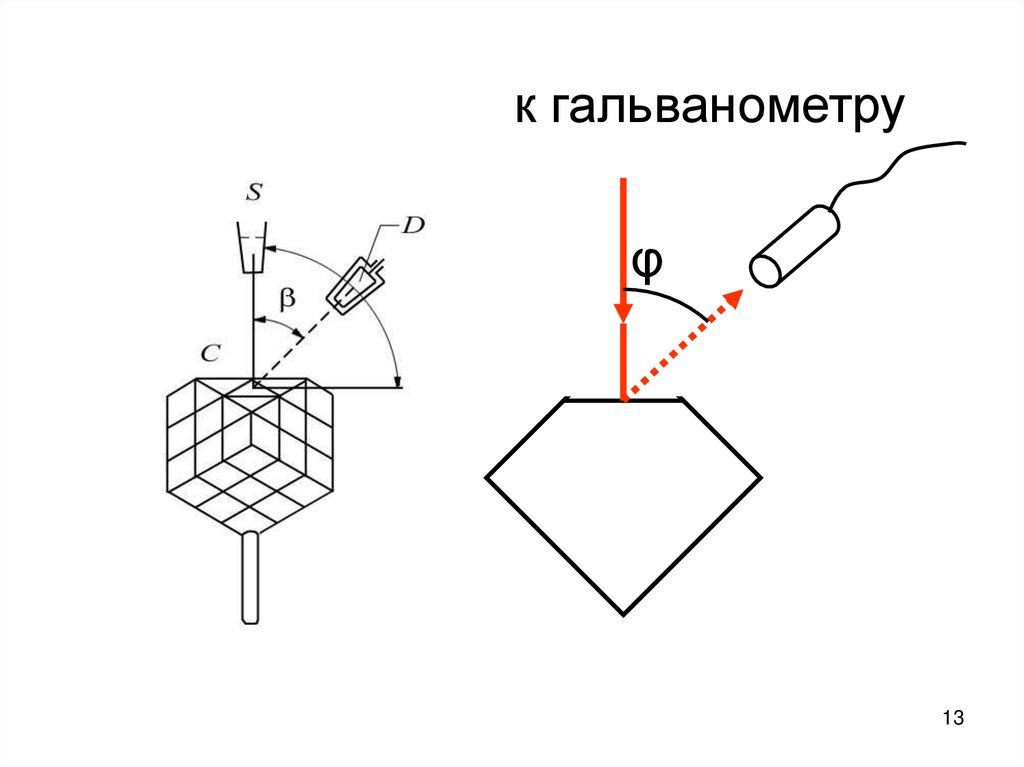 12. Отражённые электроны улавливались цилиндрическим электродом, присоединённом к гальванометру. Интенсивность отражённого пучка
