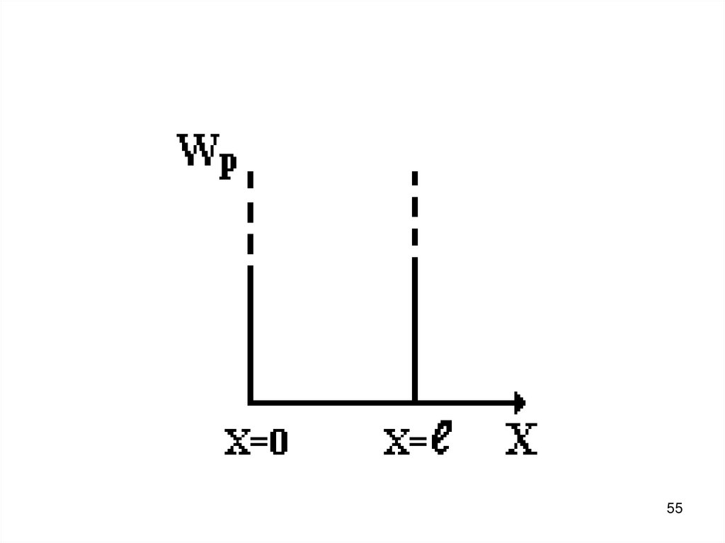 54. В этом случае энергия электрона вне и внутри потенциального ящика имеет следующие значения: Wp = 0 при 0 x ℓ, Wp = при x