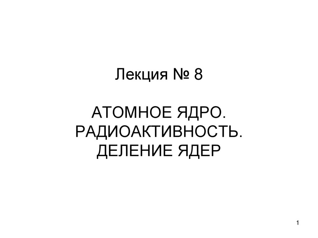 1. Лекция № 8 АТОМНОЕ ЯДРО. РАДИОАКТИВНОСТЬ. ДЕЛЕНИЕ ЯДЕР