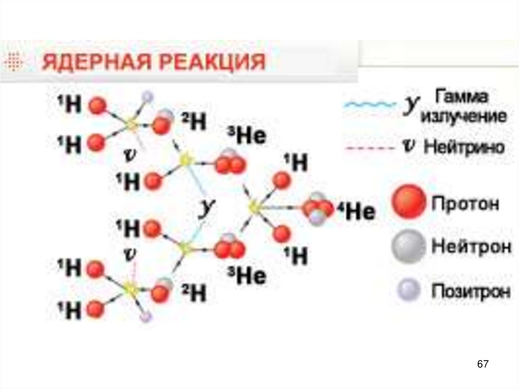 67. Ядро атома состоит из нуклонов: протонов и нейтронов. Общее число нуклонов в ядре называют массовым числом А. Число протонов в