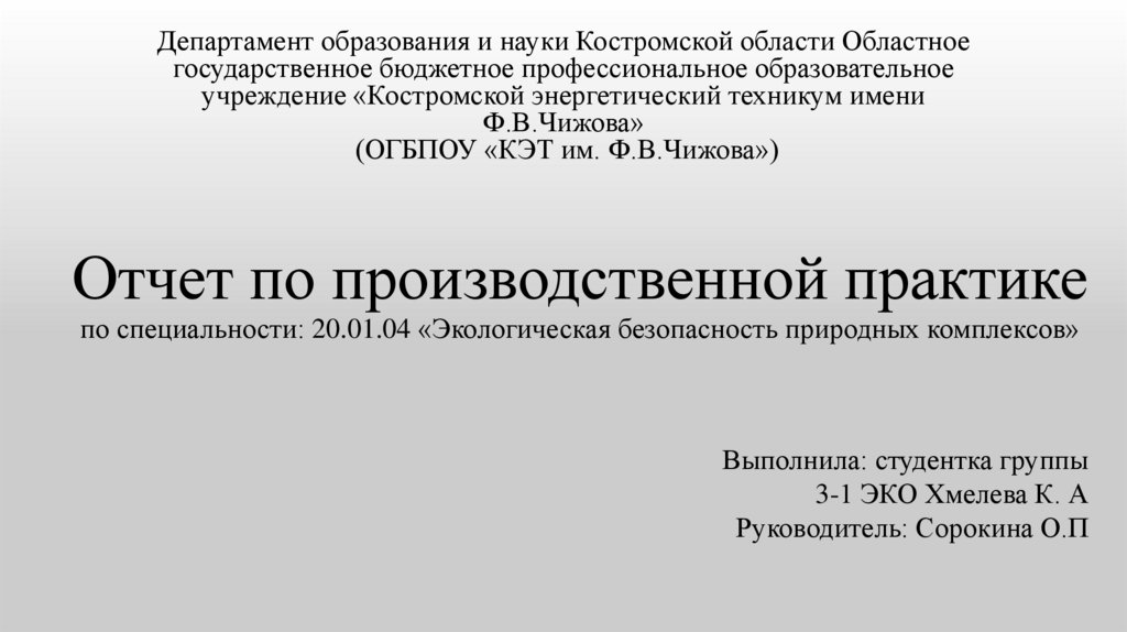 1. Отчет по производственной практике по специальности: 20.01.04 «Экологическая безопасность природных комплексов»