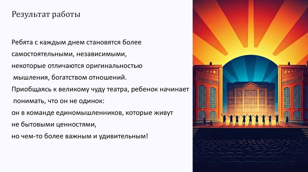 команде - все эти навыки полезны не только в театре, но и в жизни.