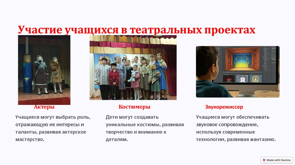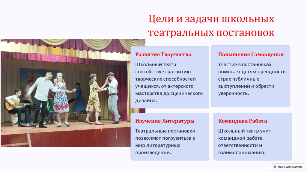 Школьный театр предлагает уникальную возможность развивать творческие навыки в игровой форме, что