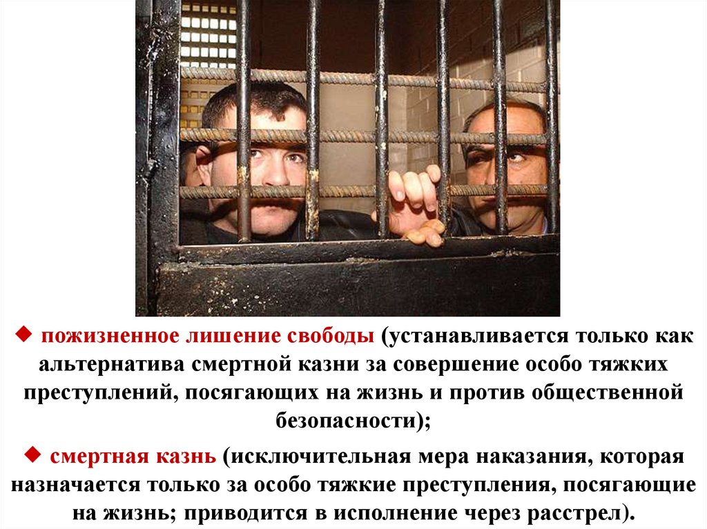 пожизненное лишение свободы (устанавливается только какальтернатива смертной казни за совершение особо тяжких