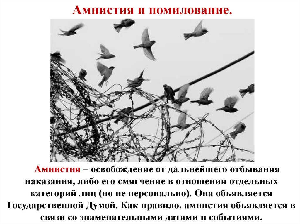 Амнистия и помилование.Амнистия – освобождение от дальнейшего отбывания