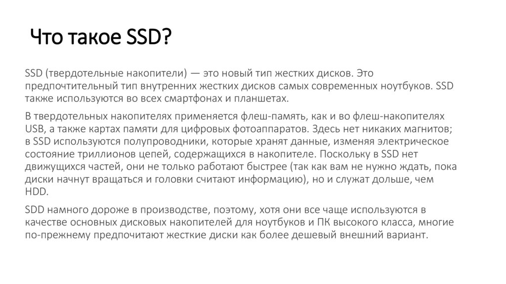 Что такое SSD?SSD (твердотельные накопители) — это новый тип жестких дисков. Это