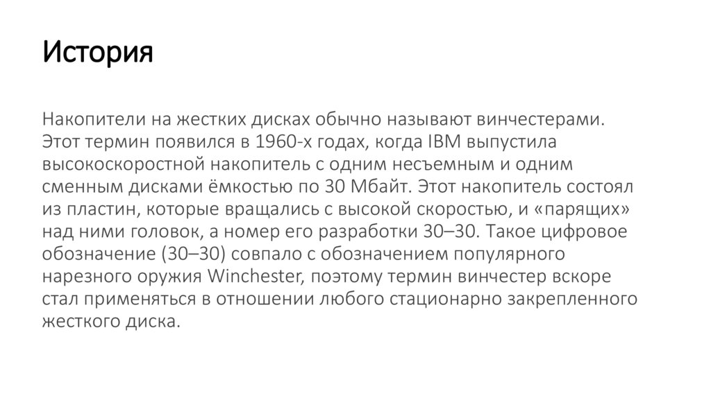 ИсторияНакопители на жестких дисках обычно называют винчестерами.