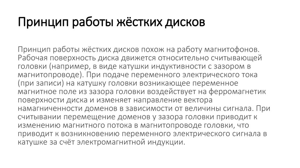 Принцип работы жёстких дисковПринцип работы жёстких дисков похож на работу магнитофонов.