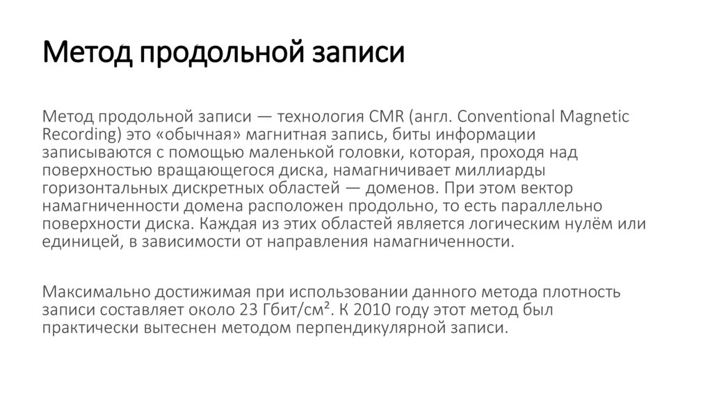 Метод продольной записиМетод продольной записи — технология CMR (англ. Conventional Magnetic