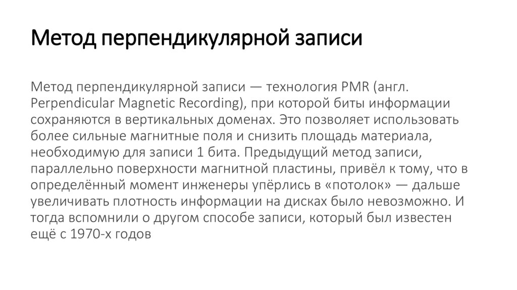 Метод перпендикулярной записиМетод перпендикулярной записи — технология PMR (англ.