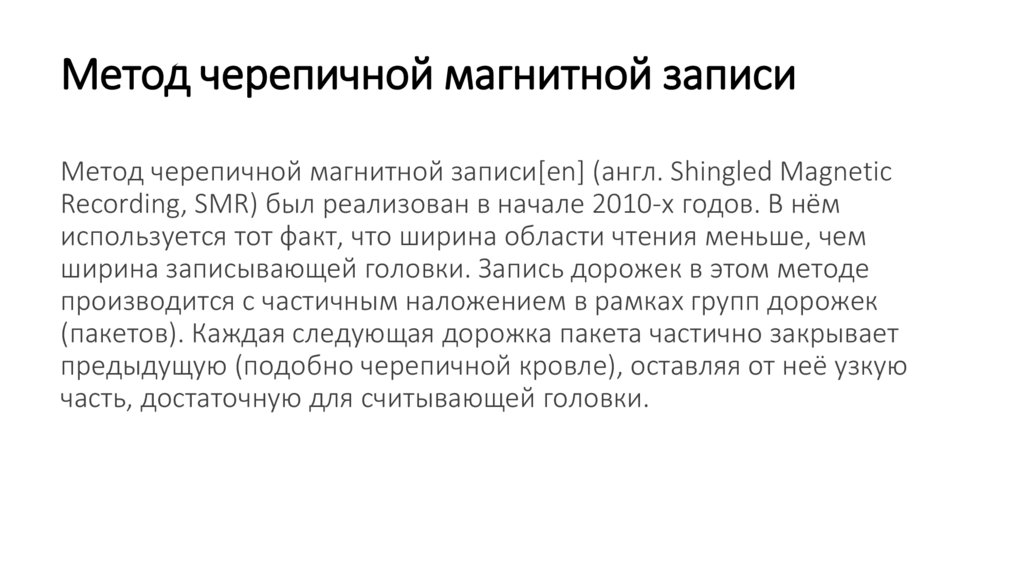 Метод черепичной магнитной записиМетод черепичной магнитной записи[en] (англ. Shingled Magnetic