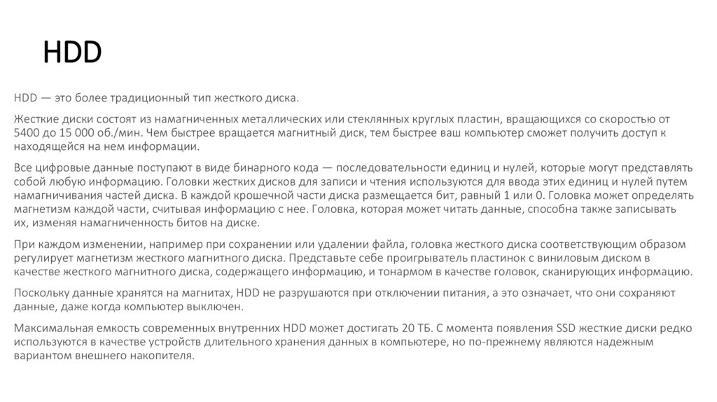 собой любую информацию. Головки жестких дисков для записи и чтения используются для ввода этих единиц и нулей путем