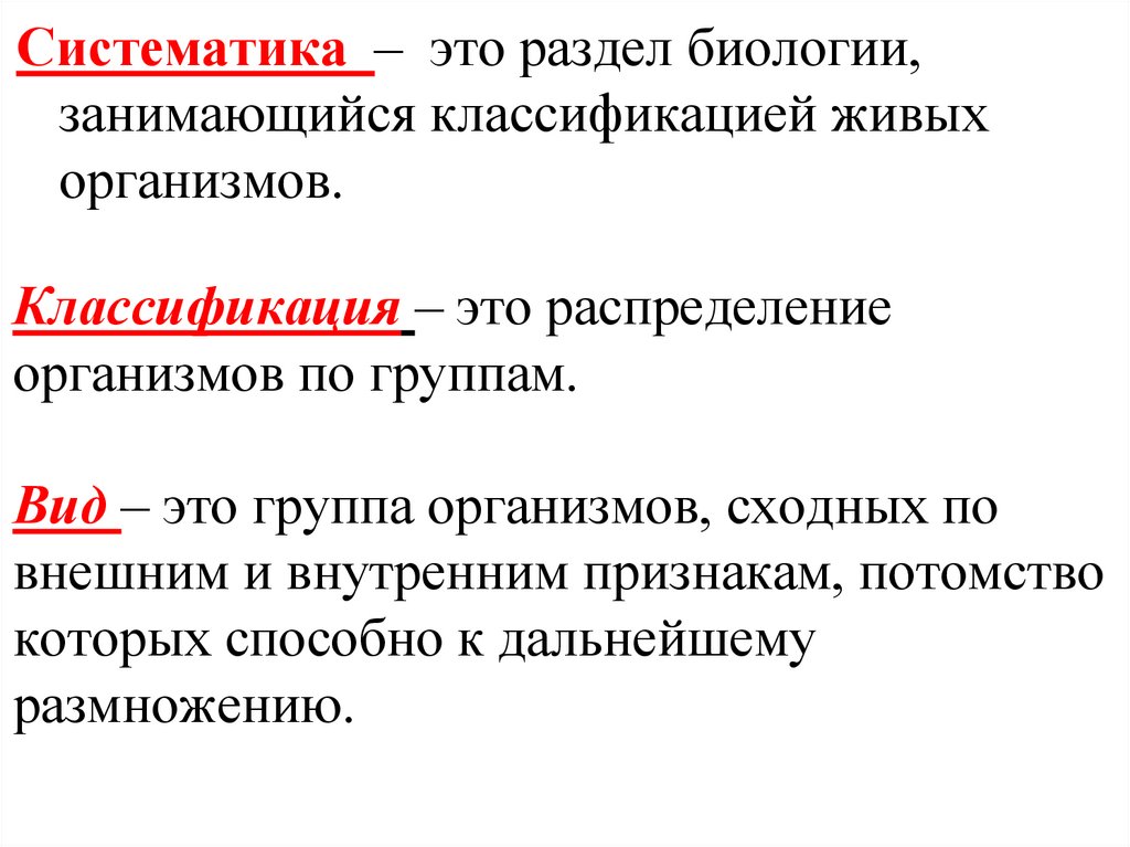 Систематика – это раздел биологии,занимающийся классификацией живых