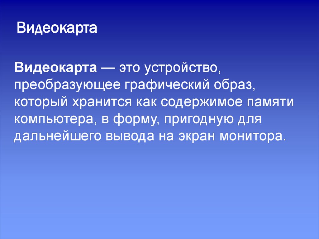 ВидеокартаВидеокарта — это устройство,