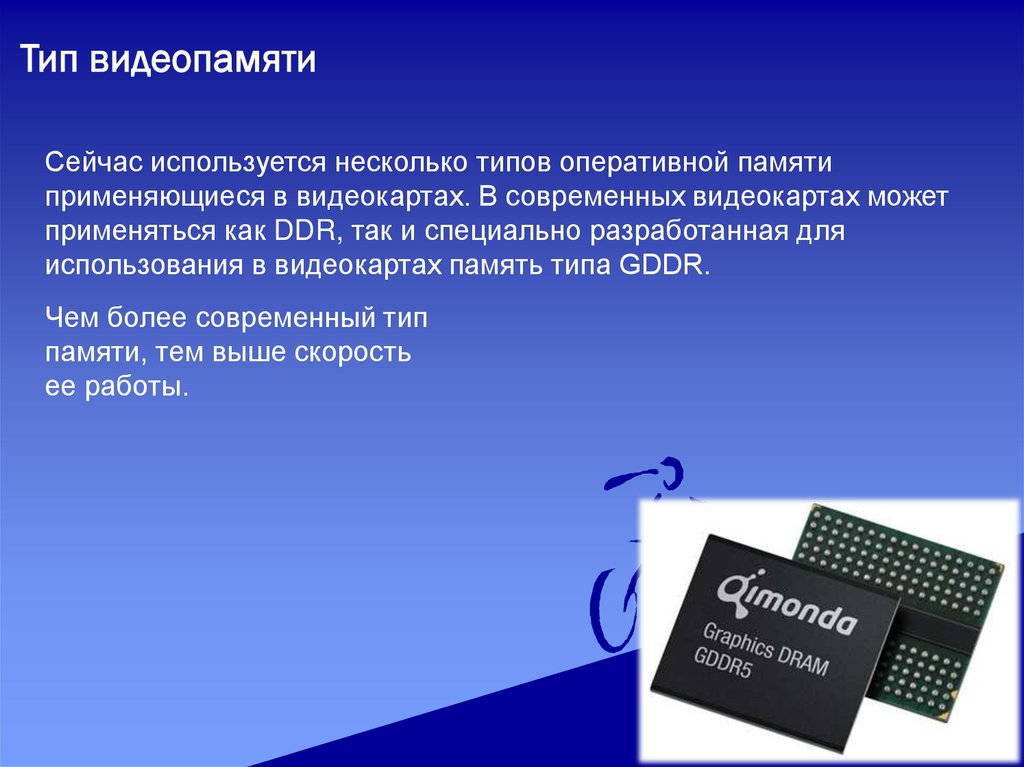 Тип видеопамятиСейчас используется несколько типов оперативной памяти