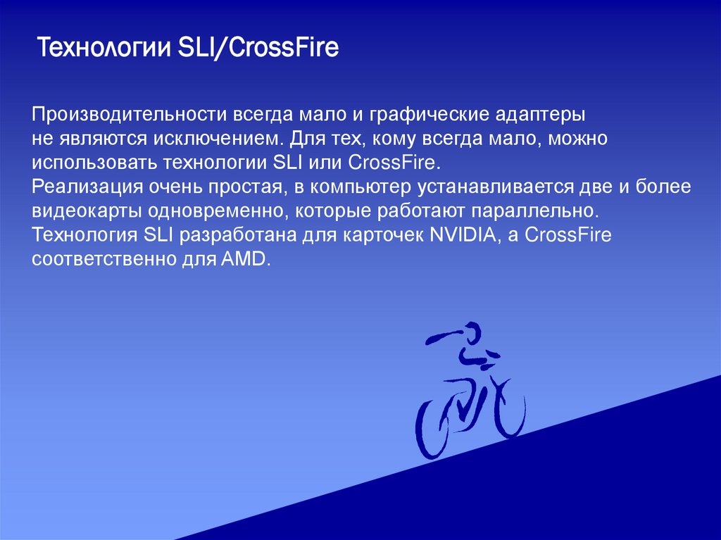 Технологии SLI/CrossFireПроизводительности всегда мало и графические адаптеры