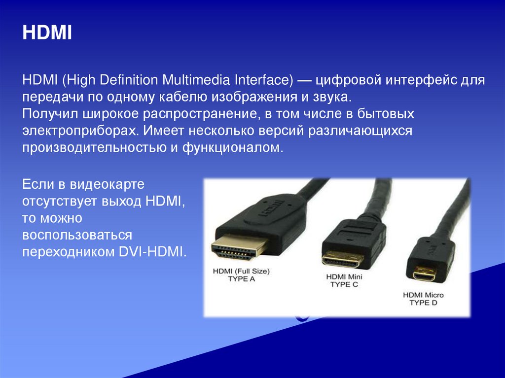 HDMIHDMI (High Definition Multimedia Interface) — цифровой интерфейс для