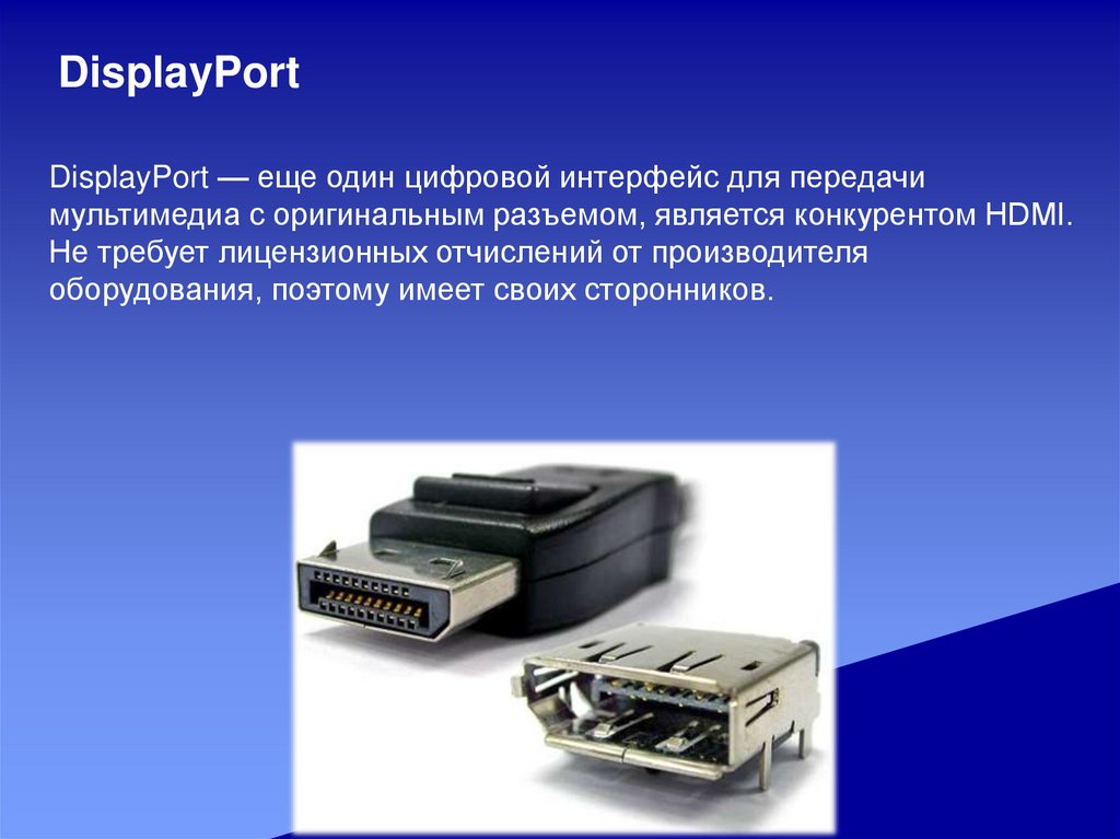 DisplayPortDisplayPort — еще один цифровой интерфейс для передачи