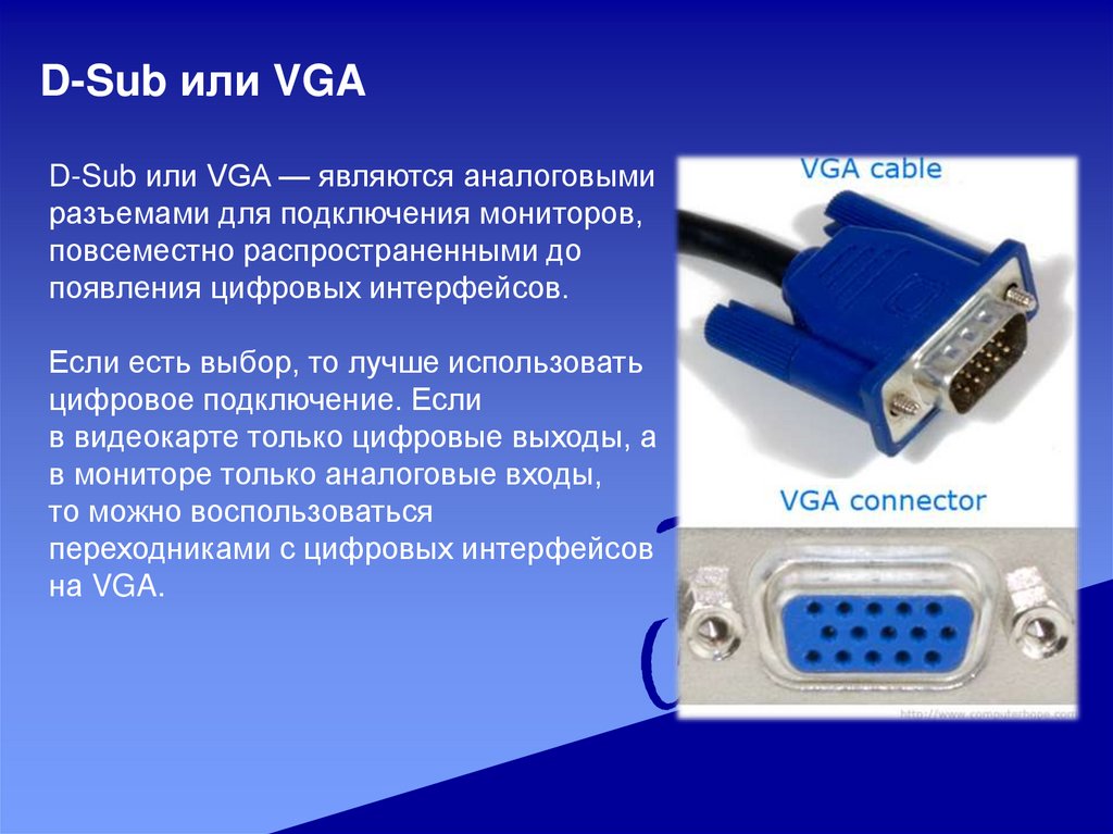 D-Sub или VGAD-Sub или VGA — являются аналоговыми