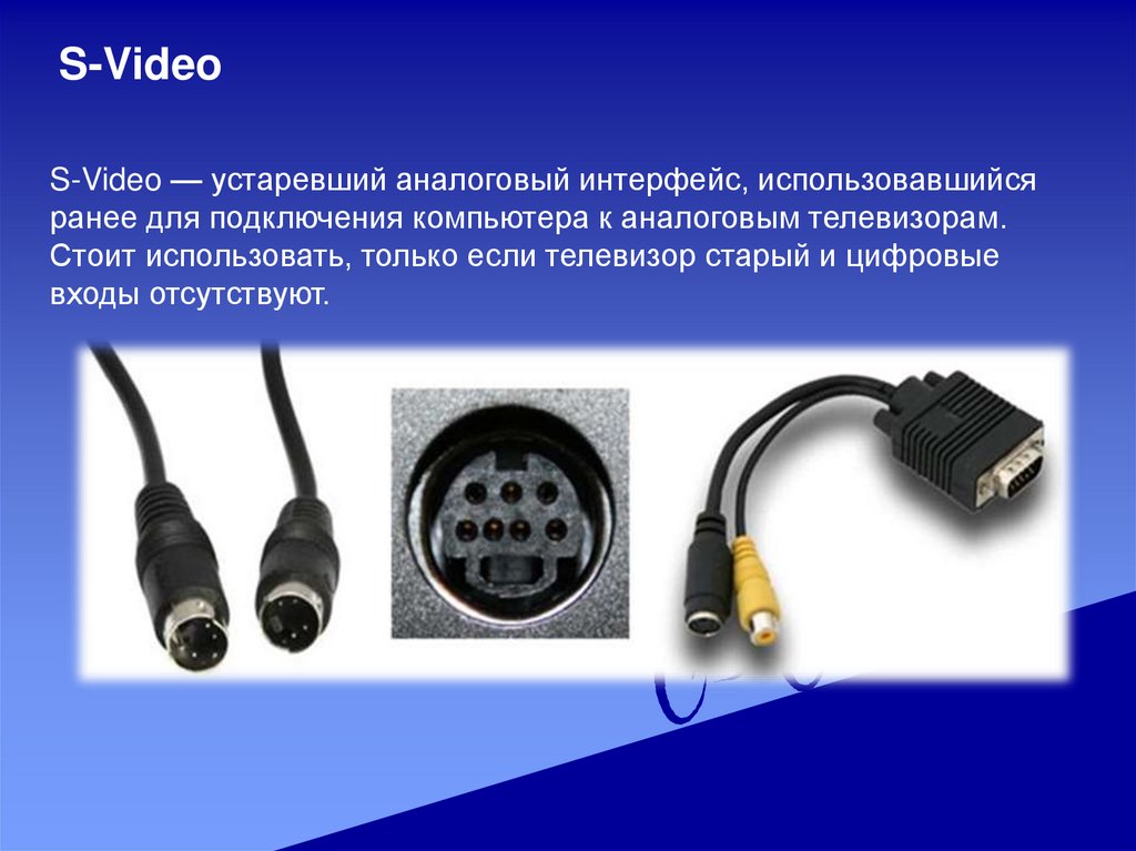 S-VideoS-Video — устаревший аналоговый интерфейс, использовавшийся