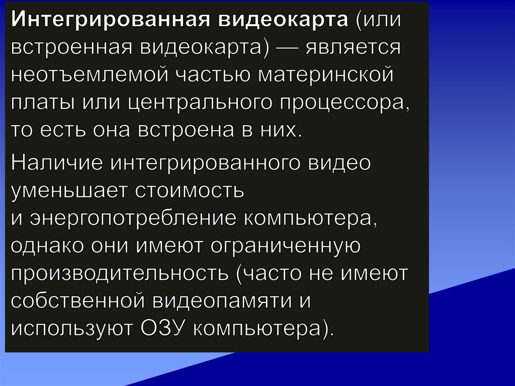 Виды видеокартИнтегрированная