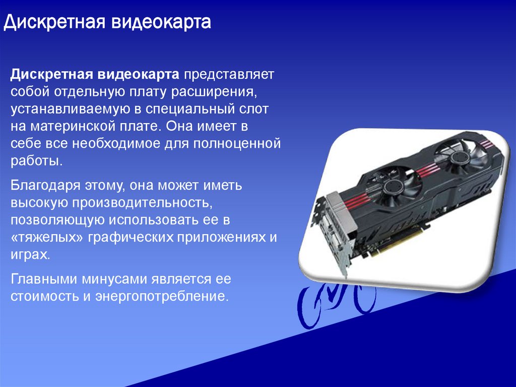 Дискретная видеокартаДискретная видеокарта представляет