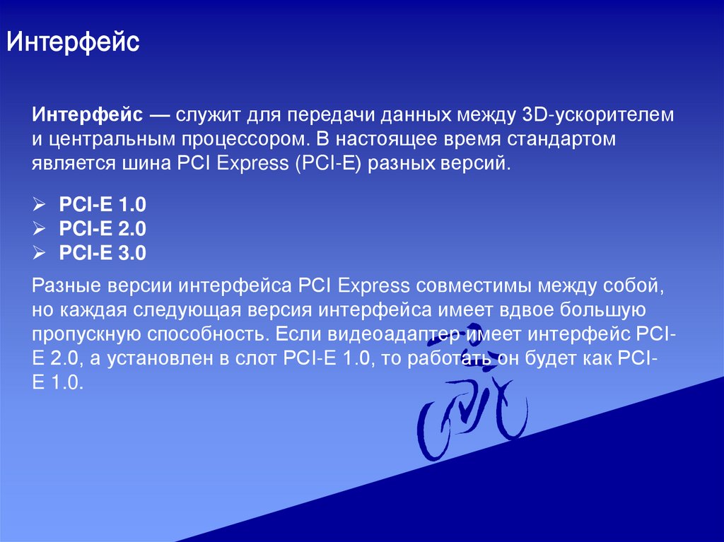 ИнтерфейсИнтерфейс — служит для передачи данных между 3D-ускорителем