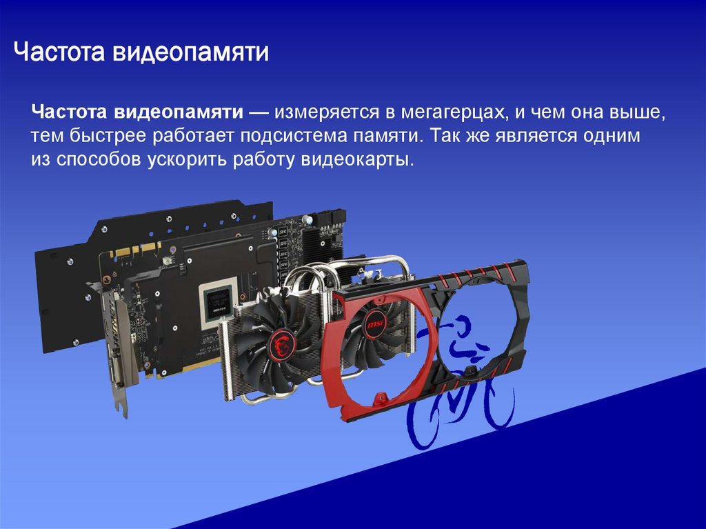 Частота видеопамятиЧастота видеопамяти — измеряется в мегагерцах, и чем она выше,