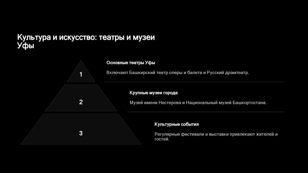 Включают Башкирский театр оперы и балета и Русский драмтеатр.