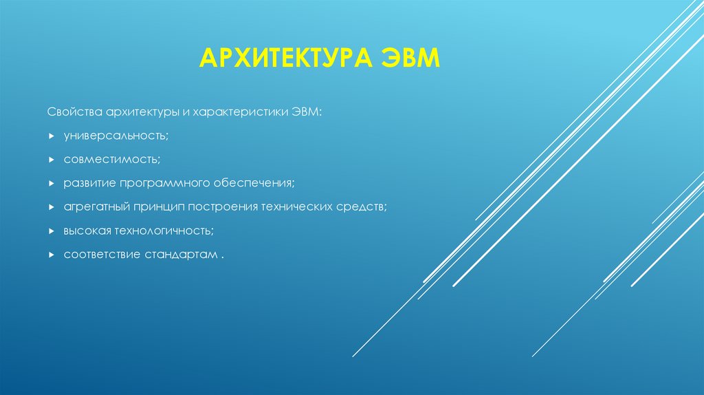 АРХИТЕКТУРА ЭВМСвойства архитектуры и характеристики ЭВМ: