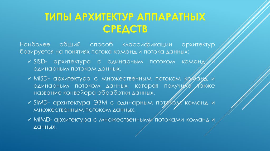 ТИПЫ АРХИТЕКТУР АППАРАТНЫХСРЕДСТВ