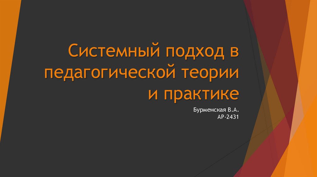 Педагогика, Системный подход в пед. теории и практике, Бурменская В.А